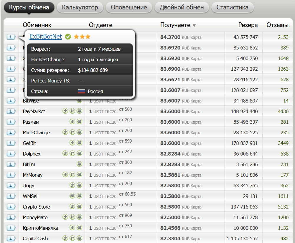 Это самый быстрый способ купить USDT, минуя прямое общение с продавцами. Чтобы не тратить время на поиски, используют агрегаторы вроде BestChange. Они собирают информацию о сотнях обменников: показывают курсы, резервы и отзывы.