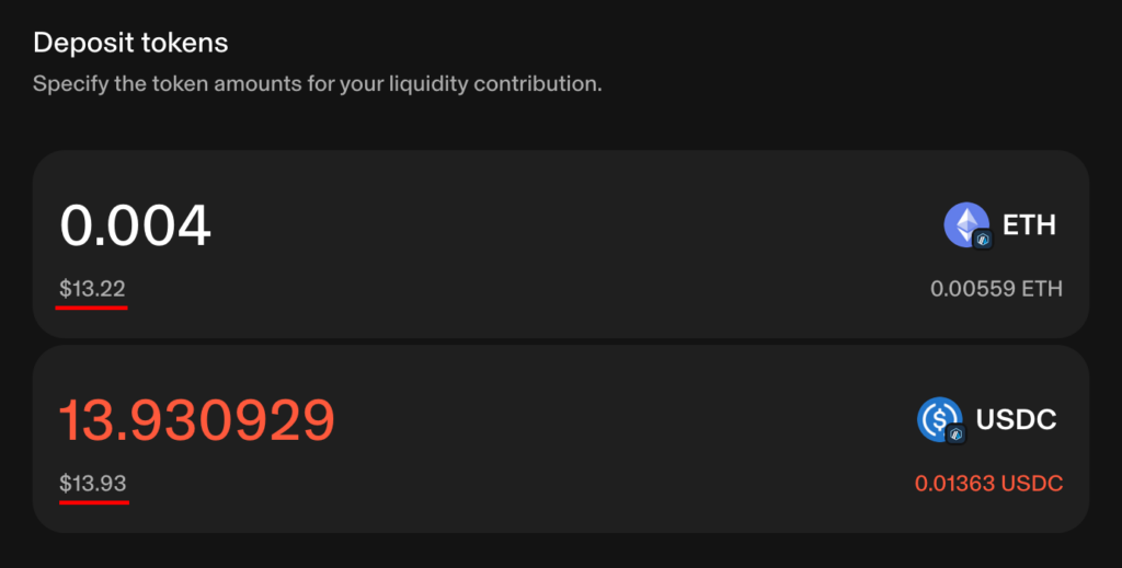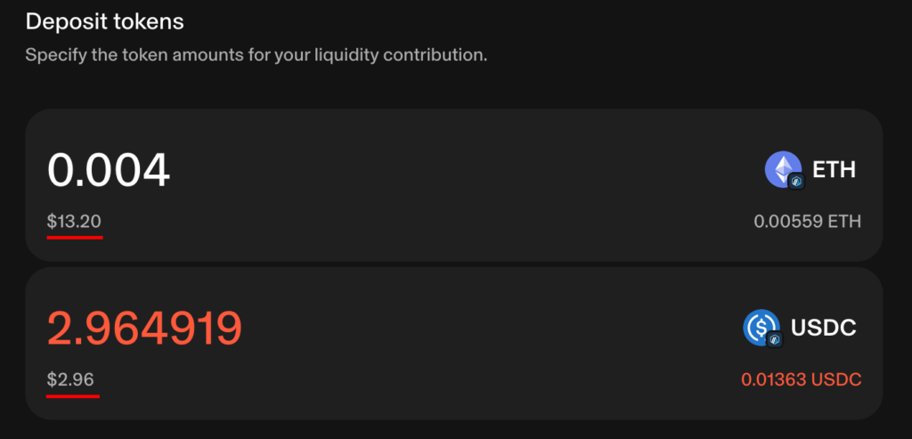 Как видите, в этом случае на ту же сумму ETH требуется гораздо меньшее количество USDC.