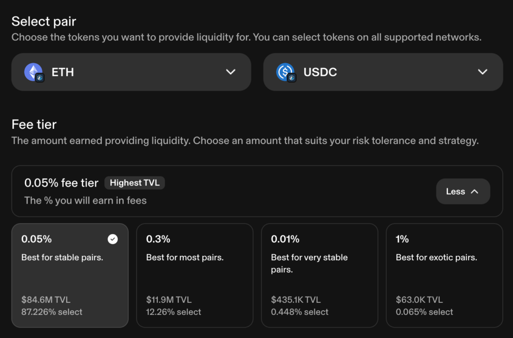 Как вы наверняка знаете, у каждого пула ликвидности есть свой уровень комиссий (fee tiers).