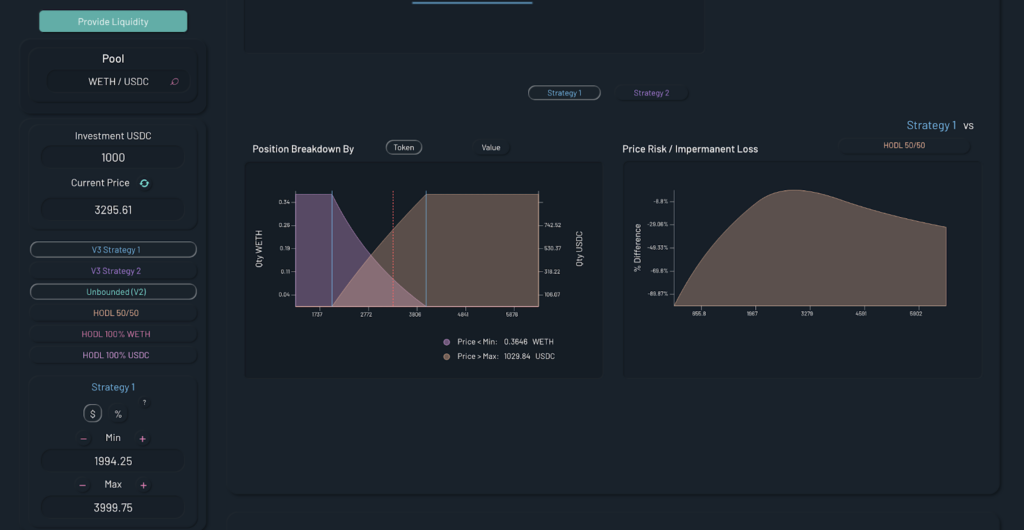 Там вы можете промоделировать LP-позицию в Uniswap v3 без риска для капитала.