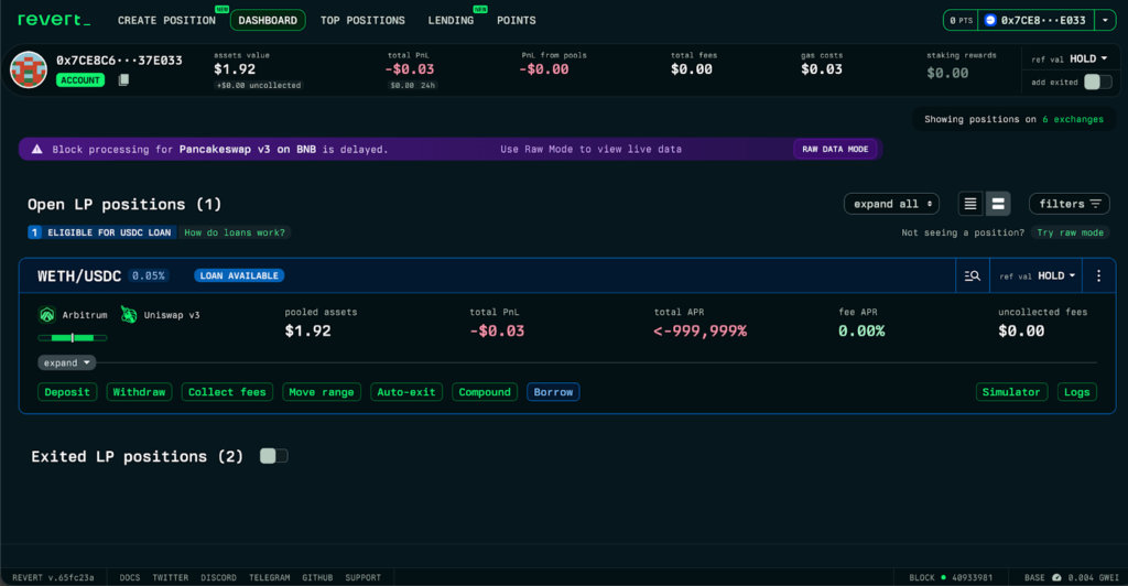 Имейте в виду, что revert finance пока не поддерживает пулы Uniswap версии 4, только V3 пулы.