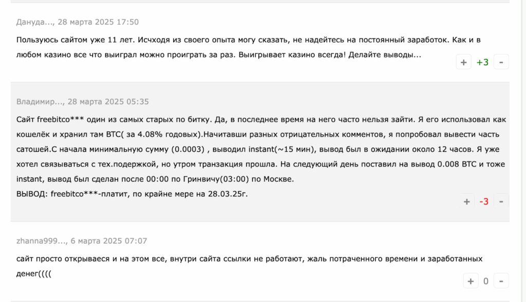 FreeBitco.in сегодня — это удобный способ протестировать работу биткоин-кошелька: вы получаете настоящие сатоши, учитесь делать транзакции и видите, как работает блокчейн. Но рассчитывать на серьезный доход не стоит — выплаты символические, и кран скорее учебный инструмент, чем источник прибыли. К тому же, пользователи сообщают о сбоях сайта и задержки выплат в несколько дней.