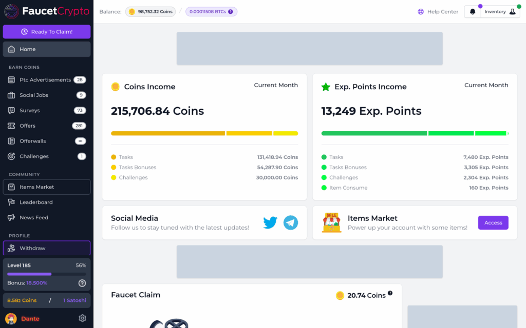 - Варианты вывода: FaucetPay или прямой перевод в криптокошельки