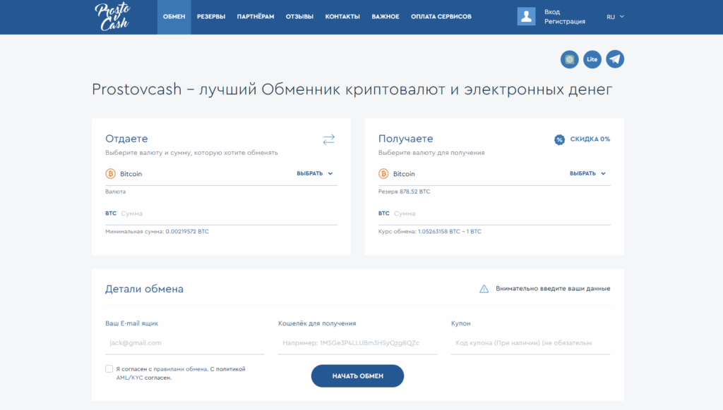 Prostocash работает с 2017 года и предлагает обмен 40 монет на рубли, евро или доллары, подключаясь к куче банков для гладких переводов без заминок. Сервис собрал множество положительных отзывов на BestChange — больше 7500, где люди говорят о приватности и отсутствии скрытых комиссий. Регулярные клиенты радуются скидкам и рефералкам, где можно дополнительно заработать, приглашая друзей. Сделки проходят быстро, за минуты, без лишних шагов, что спасает в спешке. В нашей стране он популярен за строгую законность и акцент на безопасность, с современными инструментами защиты.