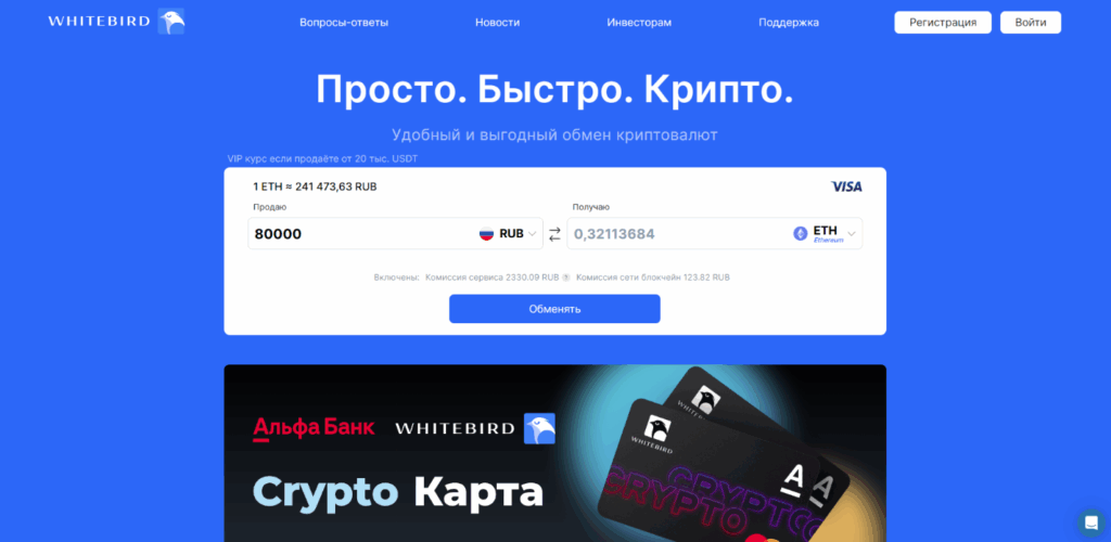Whitebird появился в 2020 году как часть Парка Высоких Технологий в Беларуси, фокусируясь на обмене 6 основных криптовалют на рубли и валюту, строго по правилам. Сервис нацелен на честные сделки для обычных людей и фирм, с мини-приложением в Telegram для удобства на телефоне. Его признали лучшим оператором в регионе, что говорит о высоком уровне честности и надежности. Отзывы полны похвал за минимум бюрократии и скорость в блокчейне. В России полезен для сделок с соседями в СНГ, где нужна абсолютная законность.