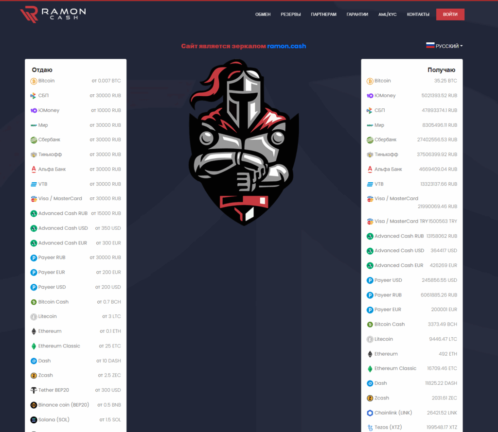 RamonCash функционирует с 2018 года, дает возможность пользователям обменивать 32 криптовалоюты на рубли, евро, доллары с поддержкой на двух языках. Сервис ценится пользователями за скорость, удобный интерфейс, оперативную поддержку. В России популярен за последовательность и законность.