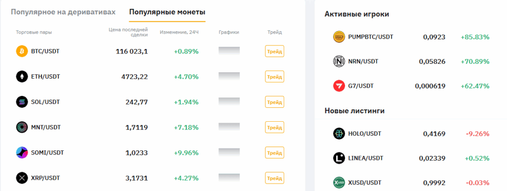 Важна хорошая репутация и объём торгов. Начинайте на Binance, Bybit, MEXC, HTX, BingX, KuCoin.