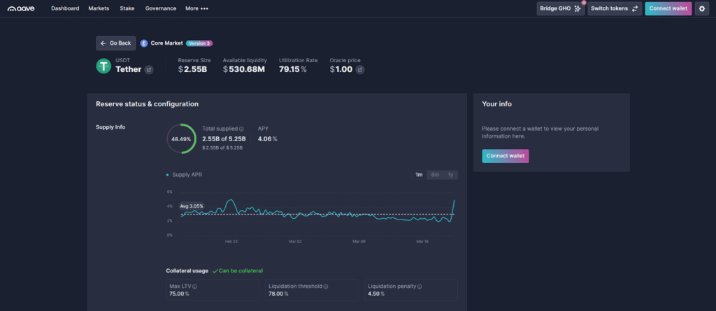 - Aave и Compound: Здесь вы одалживаете USDT другим пользователям и получаете за это процент.