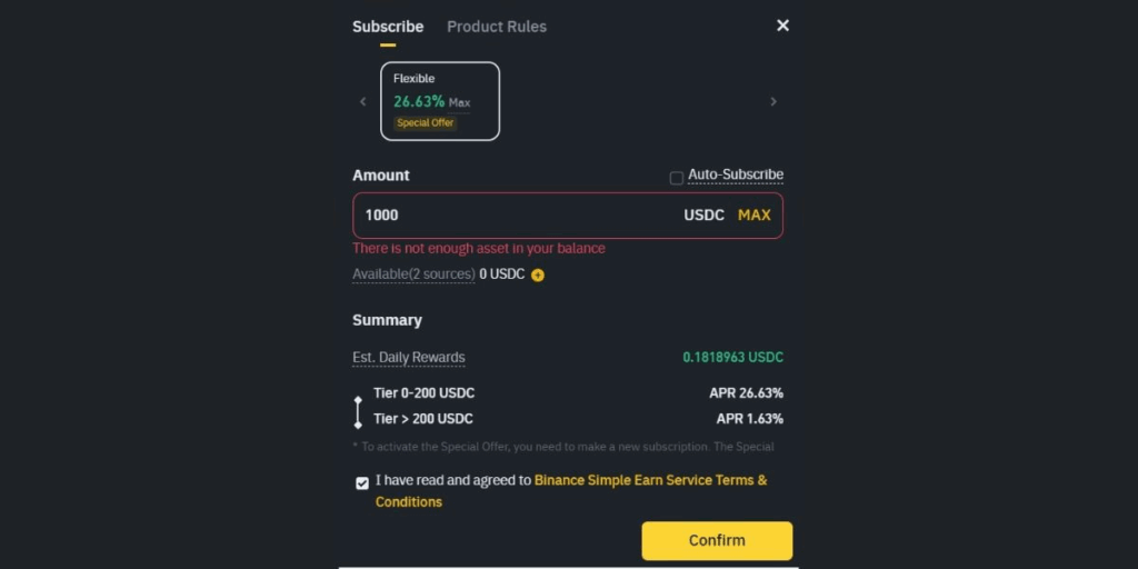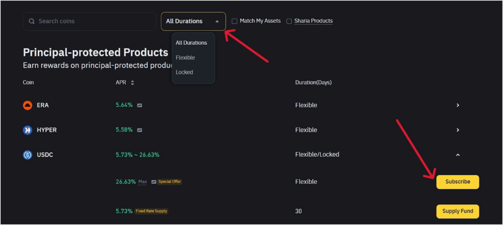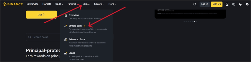 3. Выбор продукта: Перейдите в раздел Binance Earn и выберите стейкинг USDT.