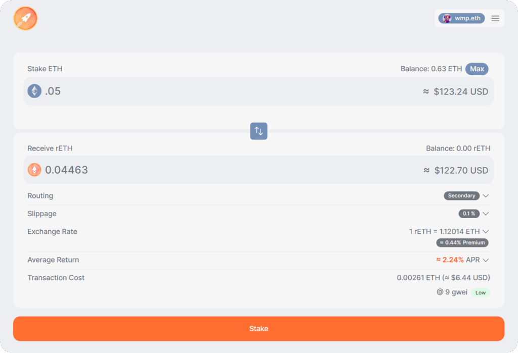 - Следите за общей суммой застейканного ETH и полученных наград.