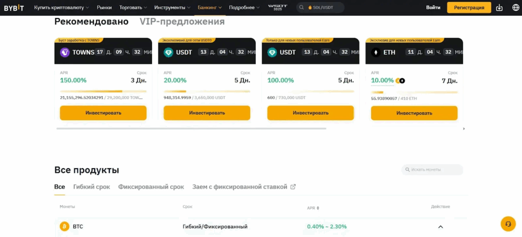 - Bybit Earn: Похожая платформа, которая часто радует повышенной доходностью в рамках акций.