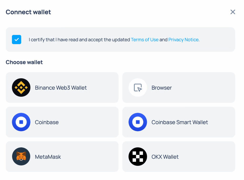 3. Нажмите Connect Wallet и выберите MetaMask.