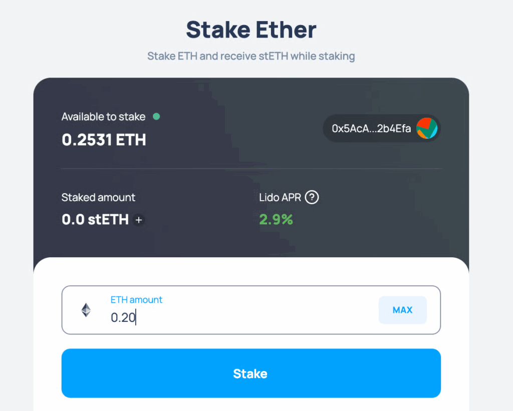 Шаг 2: Подготовка ETH для стейкинга Убедитесь, что на вашем кошельке достаточно ETH. Минимальный порог в Lido — 0.01 ETH, что делает платформу доступной для большинства пользователей.