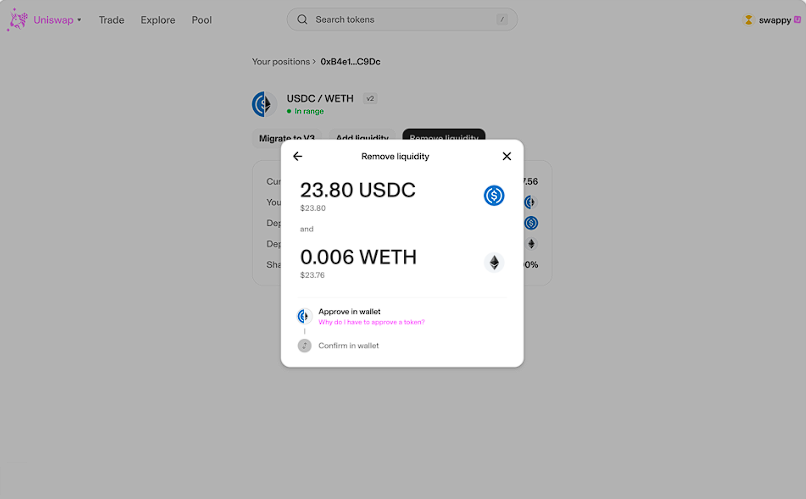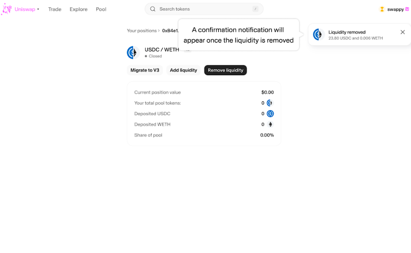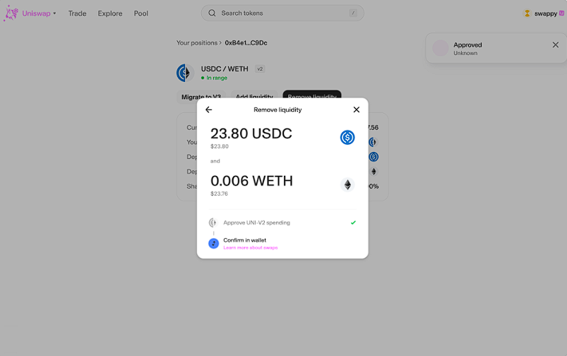 - В результате вы получаете свои первоначальные токены + заработанные комиссии и бонусные UNI;