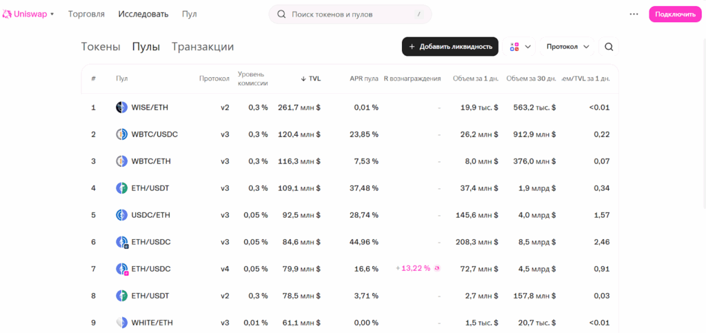 Полный обзор по пулам ликвидности на Uniswap можно посмотреть на RuTube.