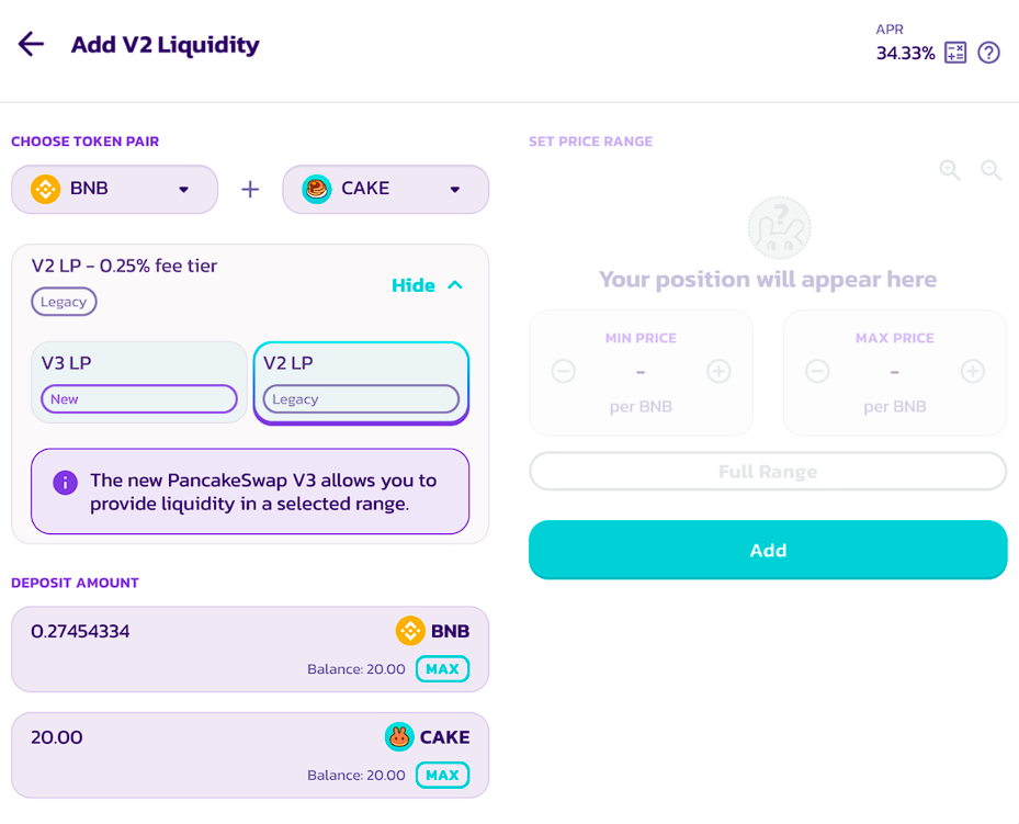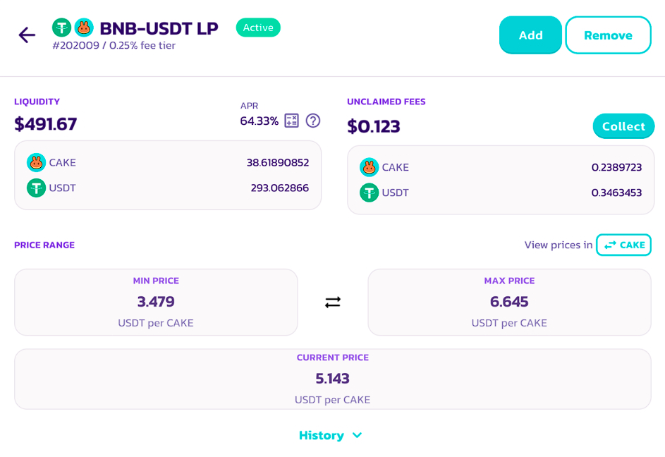 Чтобы начать, вы кладете токены в пул и получаете LP-токены. Они показывают, что пользователь предоставил ликвидность. LP-токены можно ставить на ферму, чтобы начать фарминг и собирать CAKE.