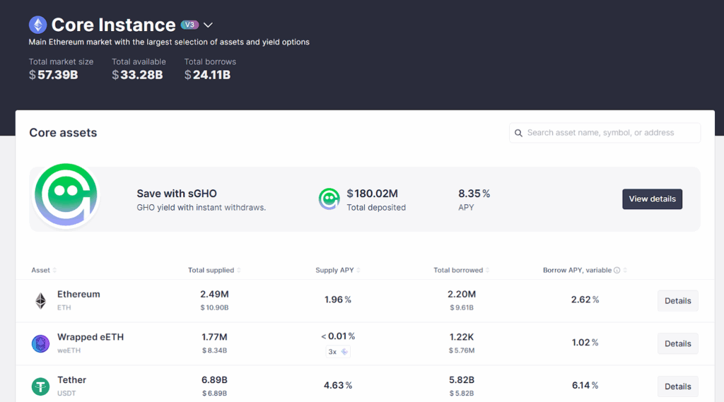 - Есть также возможность стейкинга AAVE для дополнительного дохода и участия в защите протокола.