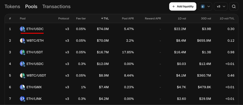 0.05% является золотым стандартом для ETH/USDC, так как это одна из самых торгуемых пар в DeFi, а большинство сделок проходят именно по этой комиссии, так как она является наиболее выгодной для пользователей.