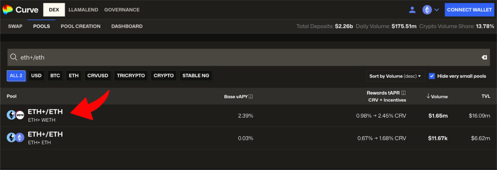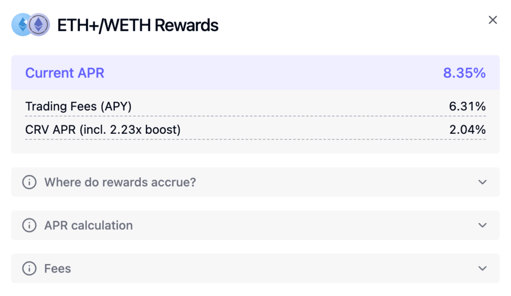 Для примера в этой статье возьмем стратегию с пулом ликвидности ETH+/WETH на бирже Curve Finance в сети Ethereum.