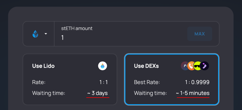 Вывод stETH через Lido vs DEX