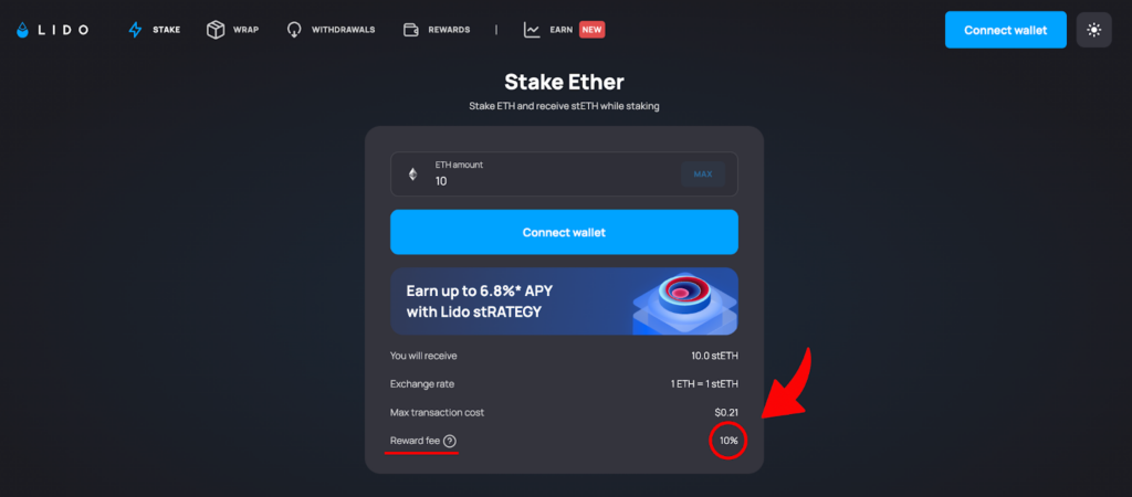 На момент написания статьи на протоколе Lido Finance комиссия (reward fee) составляет 10%.