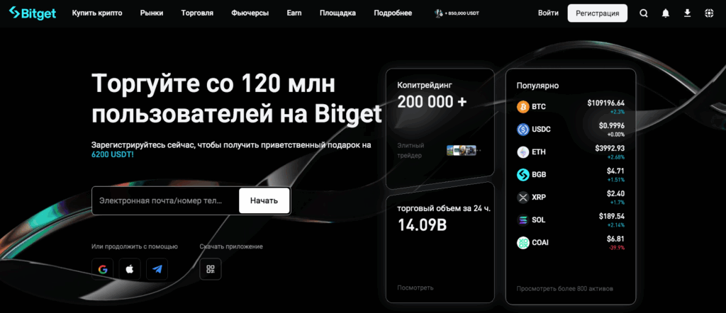 Bitget — мощная международная криптобиржа, доступная российским инвесторам. Платформа предлагает трейдерам спотовую и фьючерсную торговлю. Новичкам понравится сервис копирования сделок успешных игроков.