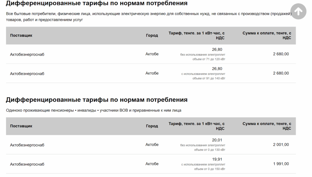 - Тариф на электроэнергию.